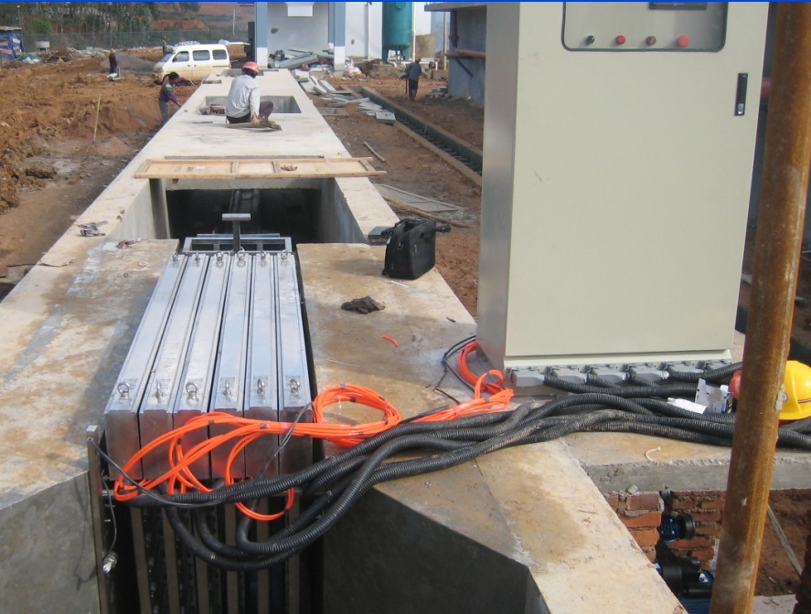 明渠紫外線污水消毒系統主要應用于市政污水處理廠的消毒及小區污水處理、中水回用和工業污水消毒等。根據使用情況及結構特點不同,分為平流水渠式和垂直水渠式,水位控制方式分為溢流堰出水方式、無動力拍門水位控制方式及電動堰門控制方式三種。